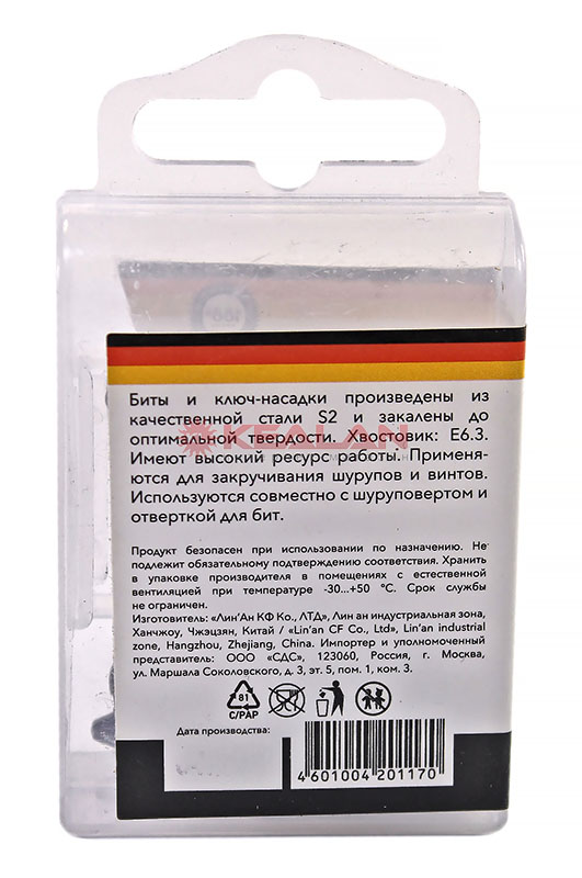 Набор односторонних бит с магнитным держателем используется работы с крепежом популярных типов и размеров с помощью шуруповерта или отвертки-адаптера. Биты изготовлены из легированной высокопрочной стали S2, что дает повышенную устойчивость к изломам и деформации в наиболее нагружаемых точках касания. Биты подходят для работы со шлицами типа PH, PZ, SL и Torx различных диаметров. Намагниченные наконечники облегчают крепление и фиксацию крепежа на бите. Шестигранный хвостовик надежно фиксирует биты в патроне инструмента и не дает им проворачиваться. Благодаря хвостовику подойдут для установки на все виды шуруповертов и отверток-адаптеров. Набор состоит из бит с наконечниками PH1/PH2/PZ1/PZ2/SL5.5/T30 (6 шт.) и магнитного держателя. Упакован в удобный для хранения пластиковый кейс. -