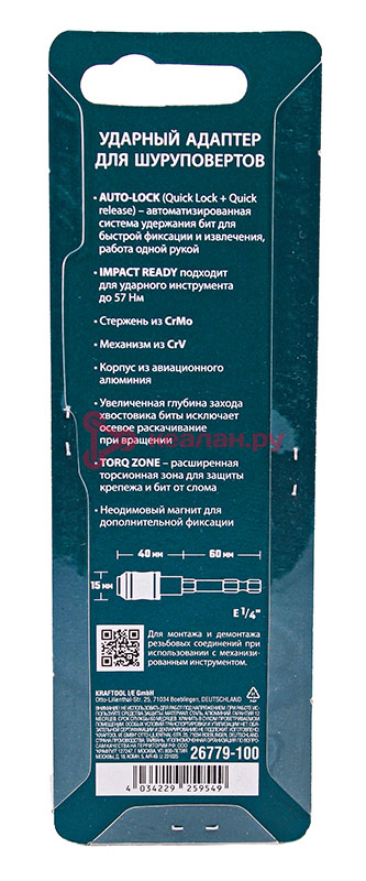 KRAFTOOL AUTO-LOCK ударный адаптер для шуруповертов, 100 мм.