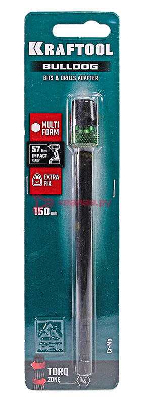 KRAFTOOL BULLDOG адаптер с жесткой автоматической фиксацией для шуруповертов, 150 мм.