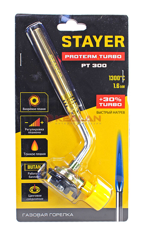 STAYER ProTerm Turbo, PT 350, 1300°C, турбо нагрев + 30%, газовая горелка на баллон с цанговым соединением, Professional