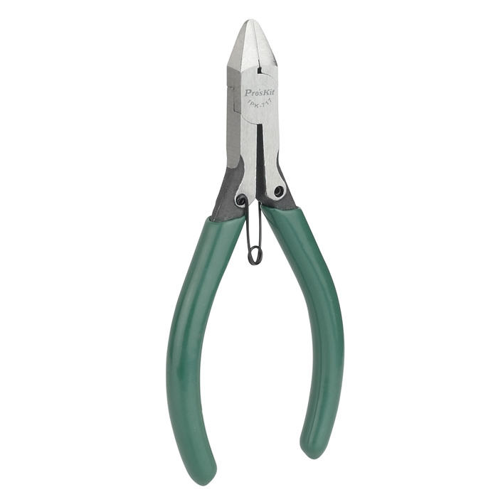 Мини кусачки диагональные Pro'sKit 1PK-717 прецизионные с возвратной пружиной и дополнительно закаленными режущими кромками из углеродистой стали.