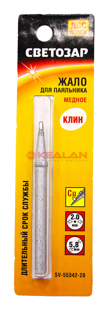 СВЕТОЗАР SV-55342-20 жало медное "Long life" для паяльников тип1, клин, диаметр наконечника 2 мм.