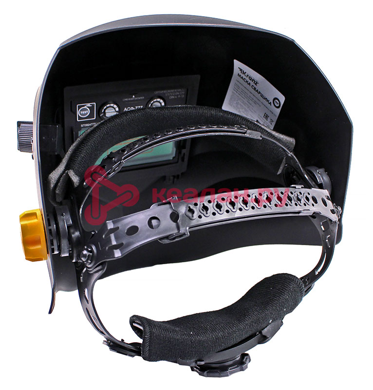 Маска сварщика с автоматическим светофильтром «Хамелеон» АСФ 777 KRANZ – это универсальная маска с автоматическим светофильтром, с возможностью регулировки степени затемнения, а также чувствительности и времени задержки. Предназначена для защиты головы, горла и органов зрения сварщика при проведении работ от ИК/УФ-излучений, искр и брызг металла. Затемнение в маске происходит автоматически до степени 9-13 DIN. В светлом состоянии маска 4 DIN. Есть возможность отключения автоматического затемнения для использования в режиме шлифовки/резки. Маска имеет удобный настраиваемый реечный наголовник и небольшой вес, благодаря чему обеспечивается комфортное использование маски. Область применения MMA, MIG/MAG сварка. Технические характеристики маски сварщика хамелеон АСФ 777 KRANZ: Тип: маска Тип светофильтра: хамелеон Материал: ударопрочный пластик Тип питания: солнечная батарея + 1 сменная литьевая батарейка CR2032 Откидное стекло: нет Возможность установки диоптрических линз: да Степень затемнения: темное состояние 9-13 DIN / светлое состояние 4 DIN Регулировка затемнения: Внешняя, плавная + режим шлифовки Регулировка чувствительности: Внешняя, плавная Режим шлифовки: да Регулировка времени задержки: Внешняя, плавная, 0.1-1 сек Время срабатывания: от светлого-затемненному 1/10 000 сек; от затемненного-светлому: изменяемое, 0.1-1 сек Оценки оптических классов (качество оптики, рассеивание света, гомогенность): 1/1/1/2 Размер экрана: 93х43 мм Размер картриджа: 110х90х9 мм Вес нетто: 0,65 кг Количество оптических датчиков: 2 независимых фотодатчика Min температура эксплуатации: -5 °С Мах температура эксплуатации: +60 °С Min температура хранения: +5 °С Мах температура хранения: +35 °С -