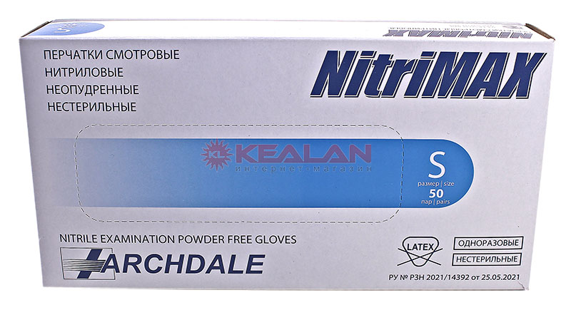 ARCHDALE NitriMAX нитриловые перчатки, голубые, размер S, смотровые, неопудренные, нестерильные, текстурированные, в упаковке 100 шт.