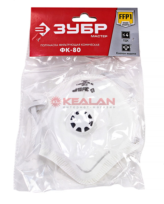 ЗУБР ФК-80, класс защиты FFP1, коническая, фильтрующая полумаска с клапаном выдоха