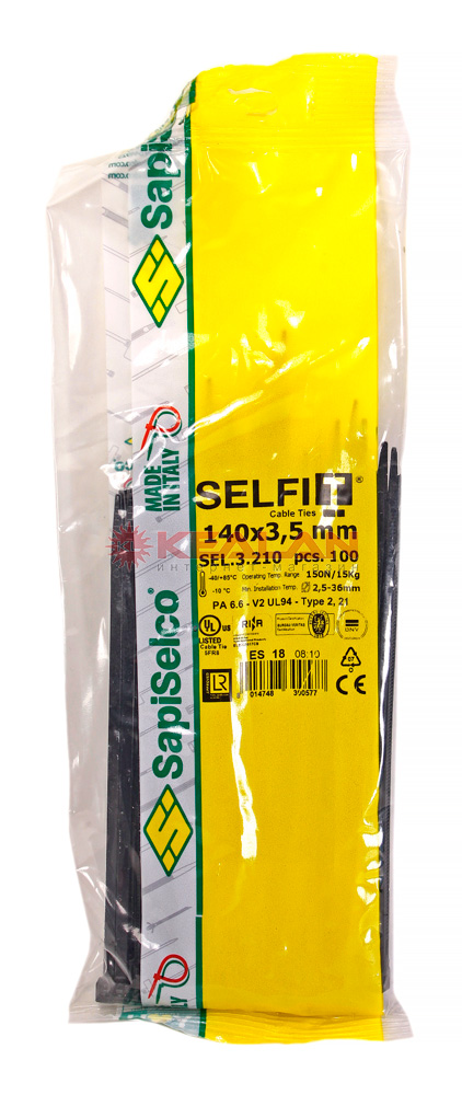 SapiSelco SEL.3.210R стяжки кабельные стандартные, черные, 140x3,5 мм, нейлон, в упаковке 100 шт.