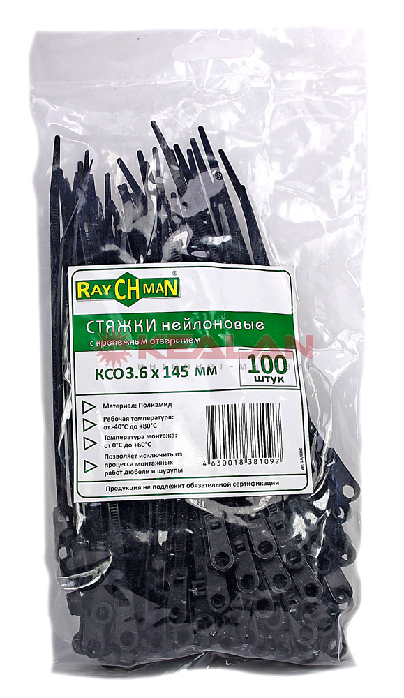 СООБЩИТЬ О ПОСТУПЛЕНИИМы вам напишем :-)Raychman КСО 3,6х145 стяжки нейлоновые с отверстием, черные, длина 145 мм, ширина 3,6 мм, в упаковке 100 шт.