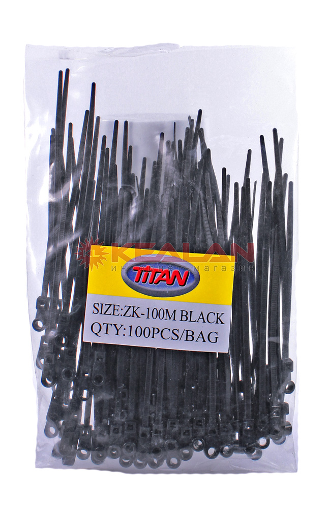 TITAN ZK-100x2,5(M) стяжки кабельные, черные, с отверстием под саморез, 100мм*2,5мм, нейлон, в упаковке 100 шт.