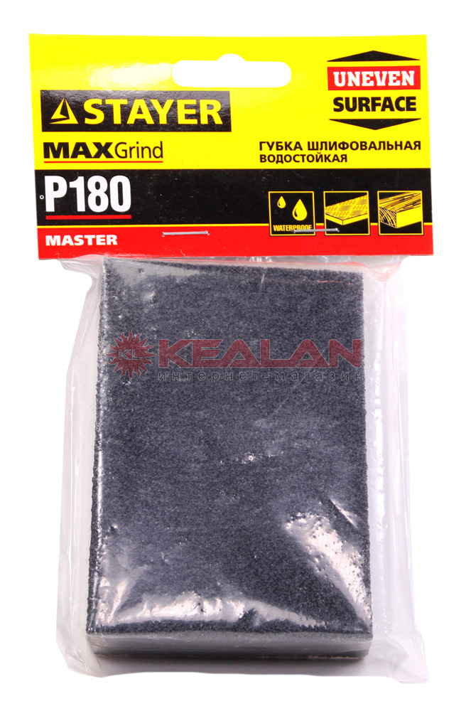 STAYER "MASTER" 3560-3 губка шлифовальная четырехсторонняя, зерно - оксид алюминия, Р180, 100x68x26 мм.