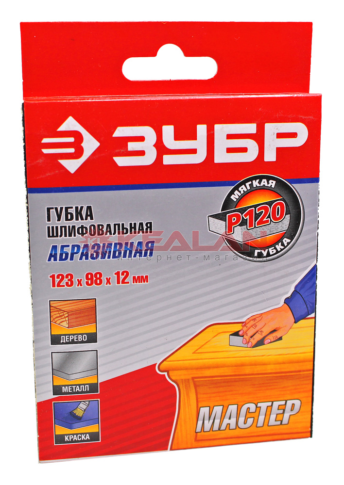 ЗУБР "МАСТЕР" 35614-120 губка шлифовальная двухсторонняя, мягкий поролон, Р120, 123х98х12 мм.