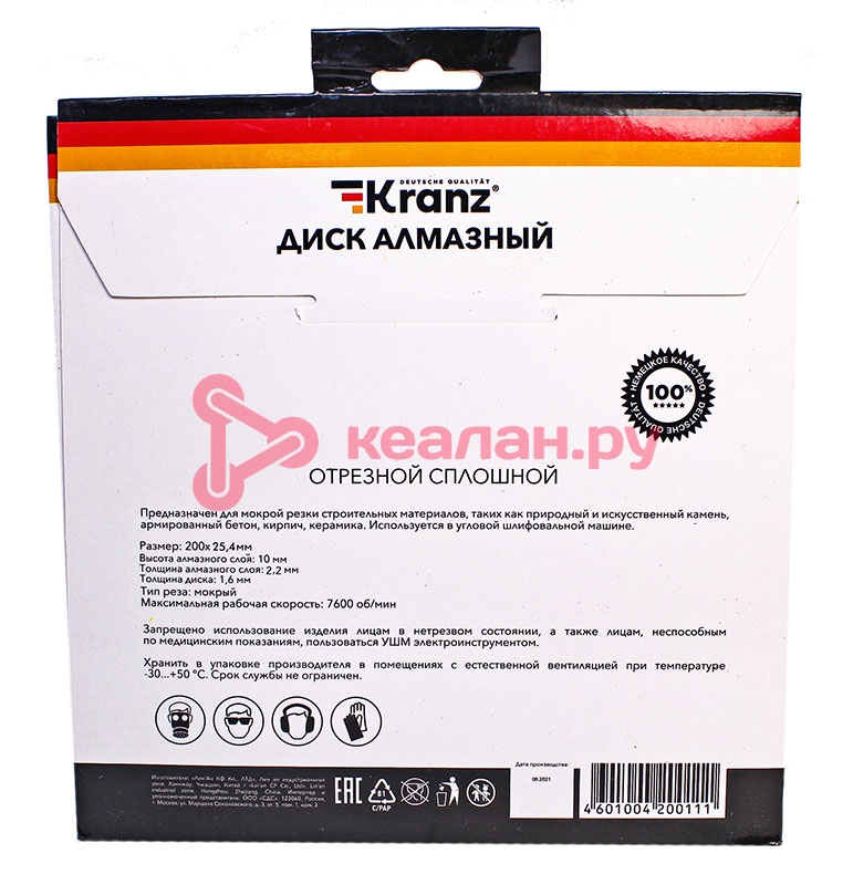 Сплошной алмазный отрезной диск предназначен для мокрой резки строительных материалов, таких как кирпич, керамика, керамогранит, природный и искусственный камень, армированный и неармированный бетон. Применяется совместно с в угловыми шлифовальными машинами, ручными электрическими плиткорезами, штроборезами. Диск состоит из стального корпуса и алмазного рабочего слоя с высотой кромки 10 мм, что обеспечивает эффективную резку материала и долгий срок службы самого диска. Сплошная конструкция способствует равномерному распределению нагрузки на кромке диска, а также создает более аккуратный рез. Процесс резки необходимо сопровождать водяным охлаждением. Срок годности не ограничен. Хранить в сухом прохладном месте. Использовать строго по назначению. Внимание! Запрещается использовать диск для разрезания металлов. При установке диска руководствуйтесь стрелкой направления вращения диска. Используйте средства индивидуальной защиты. Не утилизируйте с бытовыми отходами. -