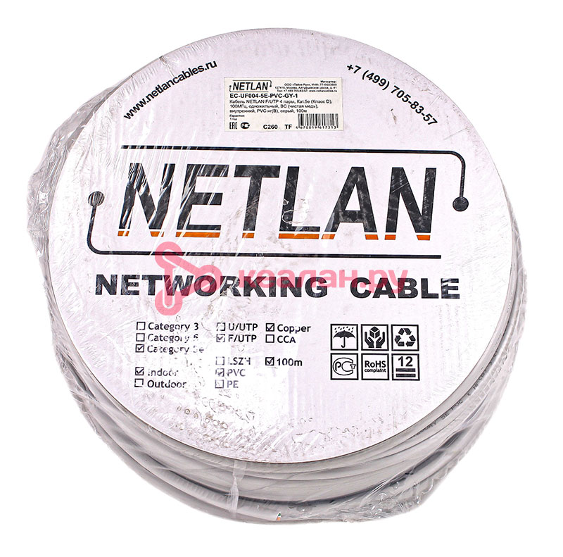 Запросить ценуМы вам напишем :-)NETLAN кабель F/UTP 4 пары, Кат. 5e (Класс D), 100 МГц, одножильный, BC (чистая медь), внутренний, PVC нг(B), серый, 100 м