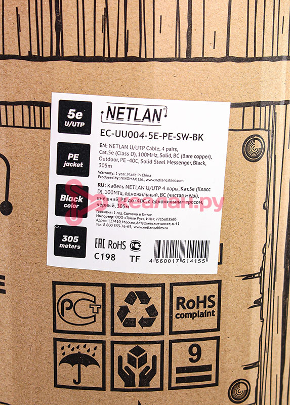 Запросить ценуМы вам напишем :-)NETLAN кабель U/UTP 4 пары, Кат. 5e (Класс D), 100 МГц, одножильный, BC (чистая медь), внешний, PE до -40C, с одножильным тросом, черный, 305 м