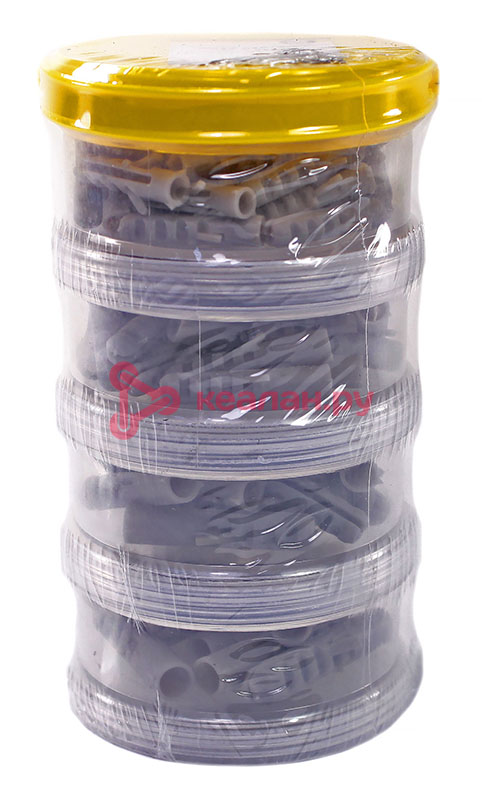 Набор распорных дюбелей используется при выполнении строительных и монтажных работ для крепкой и устойчивой фиксации крепежа во всех видах полнотелых материалов: бетоне, железобетоне и кирпиче. Специальные зубцы и блокировочные язычки обеспечивают максимальную силу трения в основании, препятствуя проворачиванию и вырыванию крепежа. При закручивании винта или шурупа тело дюбеля расширяется по всему диаметру и длине, что усиливает распорное давление и позволяет выдерживать увеличенные нагрузки. Набор состоит из 90 крепежных элементов, которых хватит для выполнения множества задач. Поставляется в практичном сборном пластиковом органайзере. Органайзер состоит из отдельных контейнеров, соединенных между собой с помощью винтовой резьбы, что упрощает хранение и организацию крепежа. Такой дизайн позволяет легко находить и использовать нужные дюбели и поддерживает порядок в крепеже. Органайзер может в дальнейшем использоваться для хранения других крепежных элементов. Набор состоит из дюбелей ⌀5 (40 шт.); ⌀6 (25 шт.); ⌀7 (15 шт.); ⌀8 (10 шт.).