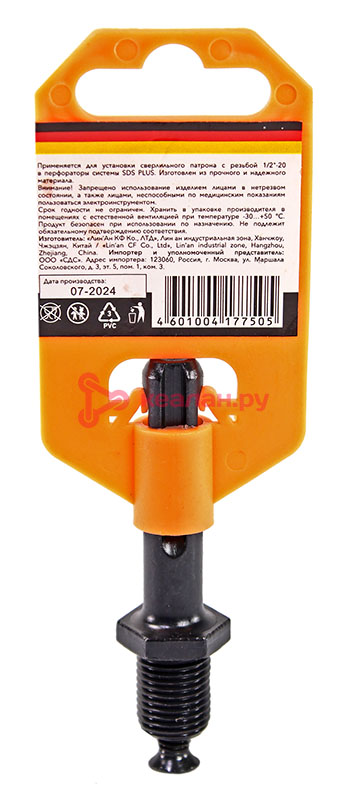 Адаптер используется для установки сверлильного патрона с резьбой 1/2"-20 в перфораторы системы SDS PLUS. Инструмент обеспечивает совместимость между двумя различными типами крепежных систем и позволяет универсально использовать инструменты с разными хвостовиками. Адаптер изготовлен из прочной и надежной инструментальной стали, благодаря чему имеет высокую прочность и долгий срок службы. -