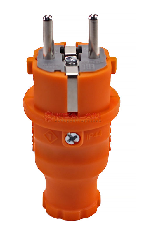 Влагозащищенная вилка предназначена для подключения бытовых и профессиональных приборов к электросети. Вилка разработана для использования в сложных эксплуатационных условиях с высокой влажностью. Широко применяется в быту, на производстве и в строительстве. Степень защиты IP44 позволяет использовать вилку для организации электропитания под открытым небом, а в дождь – под навесом. Не допускается погружение в воду. Для обеспечения безопасности детали, соприкасающиеся с токоведущими частями выполнены из огнеупорного материала, устойчивого к температуре до +850 ⁰С. Ударопрочный разборный корпус выполнен из каучука: устойчив к ударам, вибрациям и другим механическим воздействиям. Заземление: есть. Сечение проводников: 0,75-2,5 мм². Тип полюсов: 2P+РE. Контактная группа: MS-58 (латунь). -
