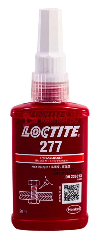 LOCTITE 277 предназначен для фиксации и герметизации резьбовых соединений, не требующих периодической разборки. Продукт полимеризуется в условиях отсутствия воздуха в небольших зазорах между металлическими поверхностями и обеспечивает фиксацию и герметизацию соединений, работающих в условиях высоких нагрузок и вибрации. Область применения - фиксация и герметизация крепежа большого диаметра (М25 и выше).