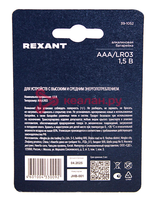 Алкалиновые батарейки предназначены для питания различных электронных устройств с высоким энергопотреблением. Подходят для широкого спектра приборов: пультов дистанционного управления, фонариков, инструментов, детских игрушек и осветительных приборов. Батарейки отличаются низким уровнем саморазряда. Качественные материалы и надежная герметичная конструкция предотвращают протекание, что обеспечивает безопасность при длительной эксплуатации. Батарейки REXANT работают в любых условиях и сохраняют эффективность при сильных перепадах температуры. -