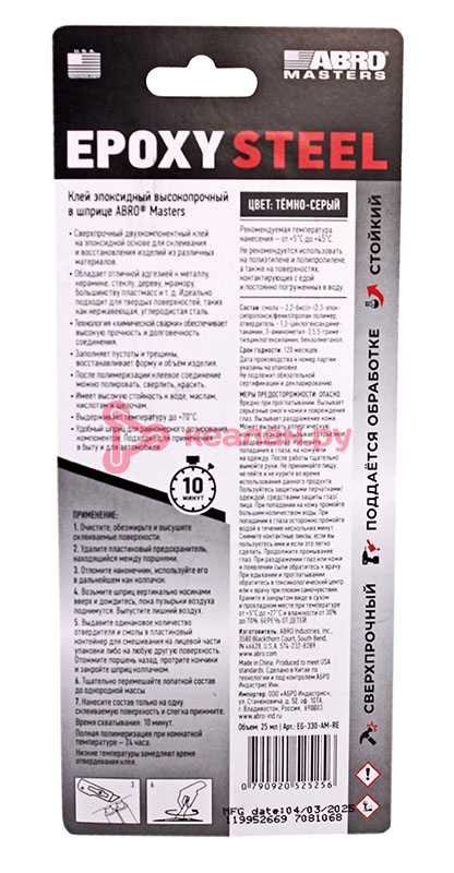Клей эпоксидный высокопрочный в шприце ABRO MASTERS