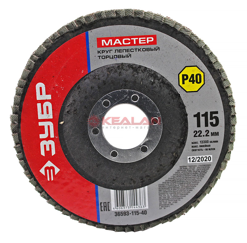 ЗУБР "МАСТЕР" круг шлифовальный лепестковый торцевой, зерно-электрокорунд нормальный, тип КЛТ 1, P40, 115х22,2мм
