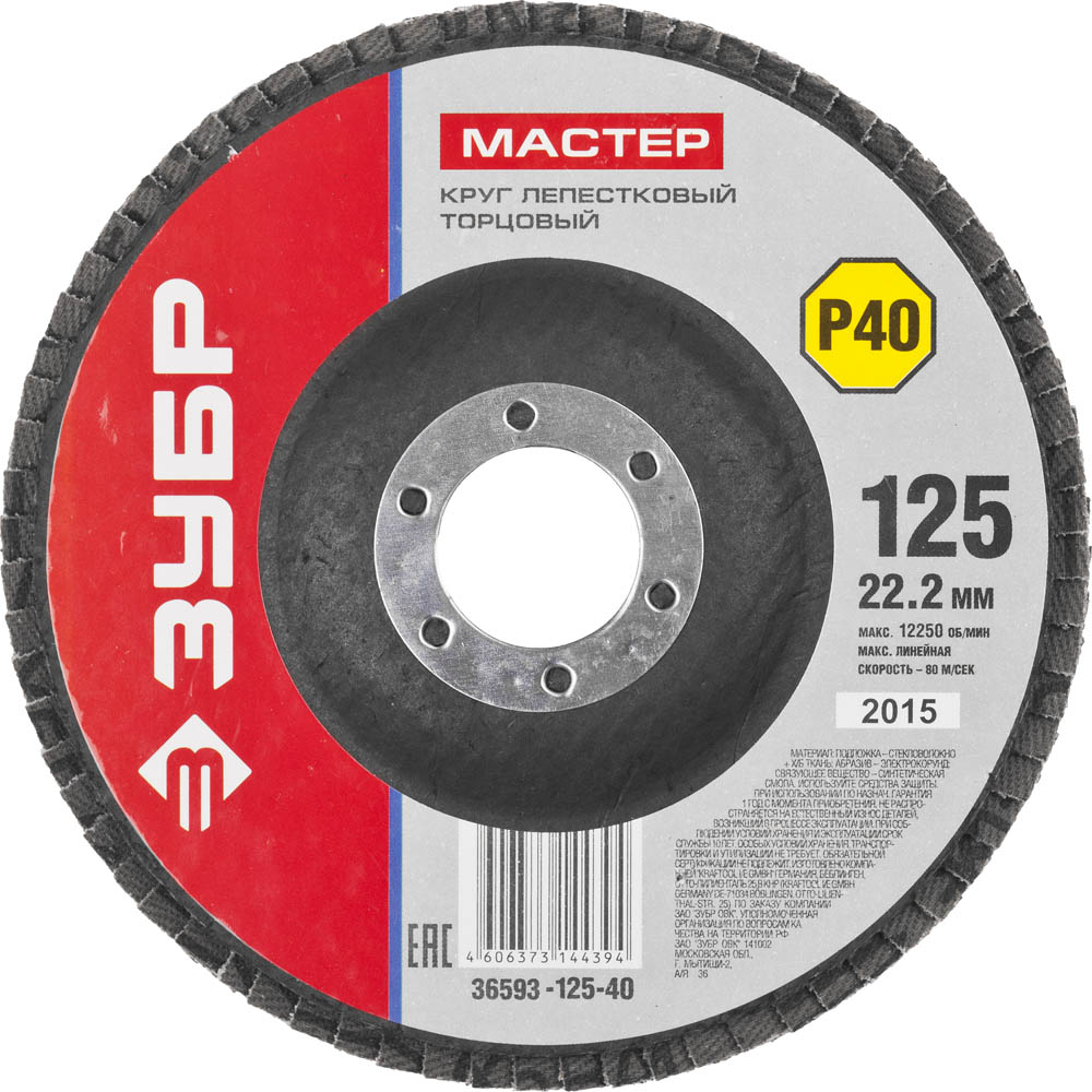 ЗУБР "МАСТЕР" круг шлифовальный лепестковый торцевой, зерно-электрокорунд нормальный, тип КЛТ 1, P40, 125х22,2мм