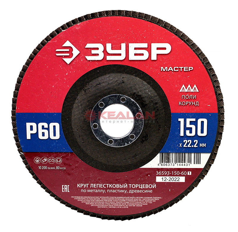 ЗУБР "МАСТЕР" круг шлифовальный лепестковый торцевой, зерно-электрокорунд нормальный, тип КЛТ 1, P60, 150х22,2мм