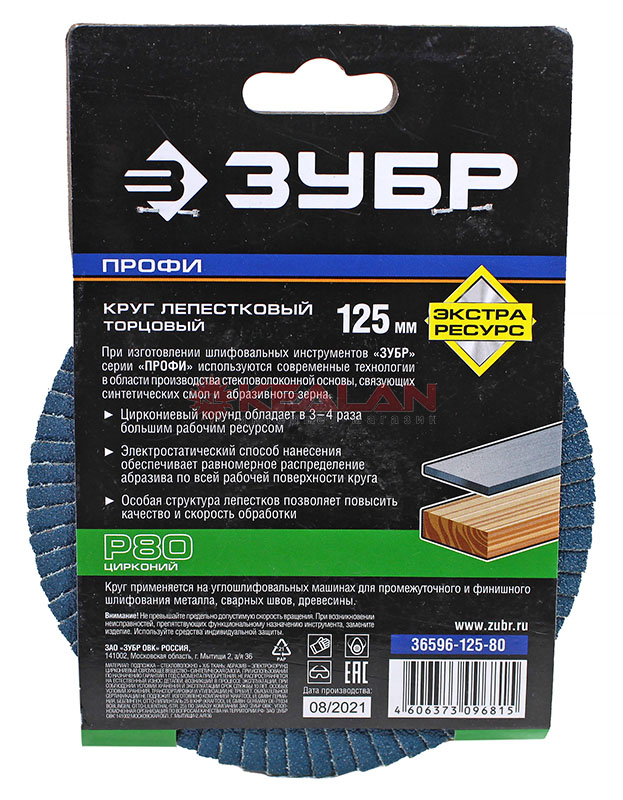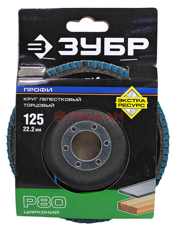 ЗУБР "ПРОФИ" круг шлифовальный лепестковый торцевой, тип КЛТ 1, зерно-электрокорунд циркониевый, P80, 125х22,2мм