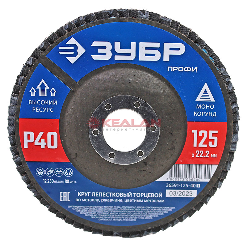 ЗУБР "ЭКСПЕРТ" круг шлифовальный лепестковый торцевой, тип КЛТ 1, зерно-электрокорунд нормальный, P40, 125х22,2мм