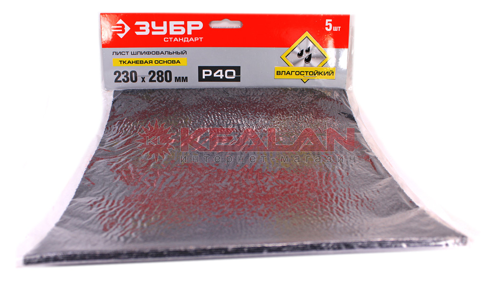 ЗУБР "СТАНДАРТ" 35415-040 лист шлифовальный на тканевой основе, водостойкий, 230х280 мм, Р40, в упаковке 5 шт.