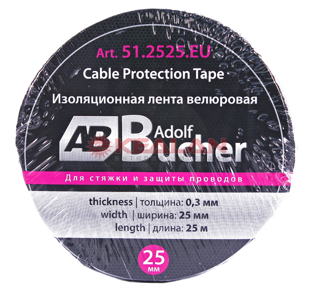 Adolf Bucher OEM 51.2525.EU изолента тканевая, материал велюр, для жгутования, размер 25 мм, 25 м, толщина 0,3 мм, в коробке 20 шт.