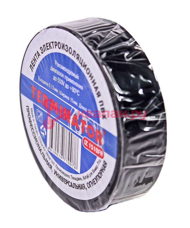 Terminator IZ 1510FR изолента черная ПВХ, огнеупорная, 0,13 мм, 15 мм, 10 м, в тубе 10 шт, в коробке 500 шт.