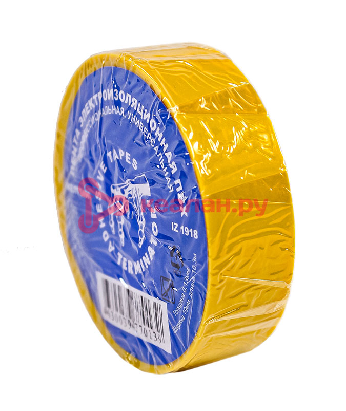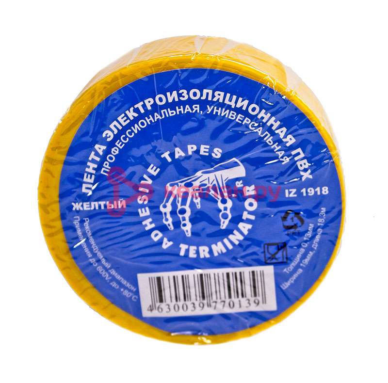 Terminator IZ 1918Y изолента желтая ПВХ, 0,13 мм, 19 мм, 18,3 м, в тубе 10 шт, в коробке 250 шт.