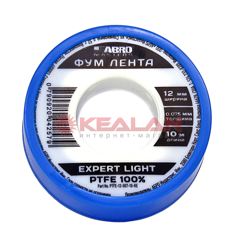 ABRO MASTERS PTFE-12-007-10-RE ФУМ лента Expert lite, размеры: 0,075 мм, 12 мм, 10 м.